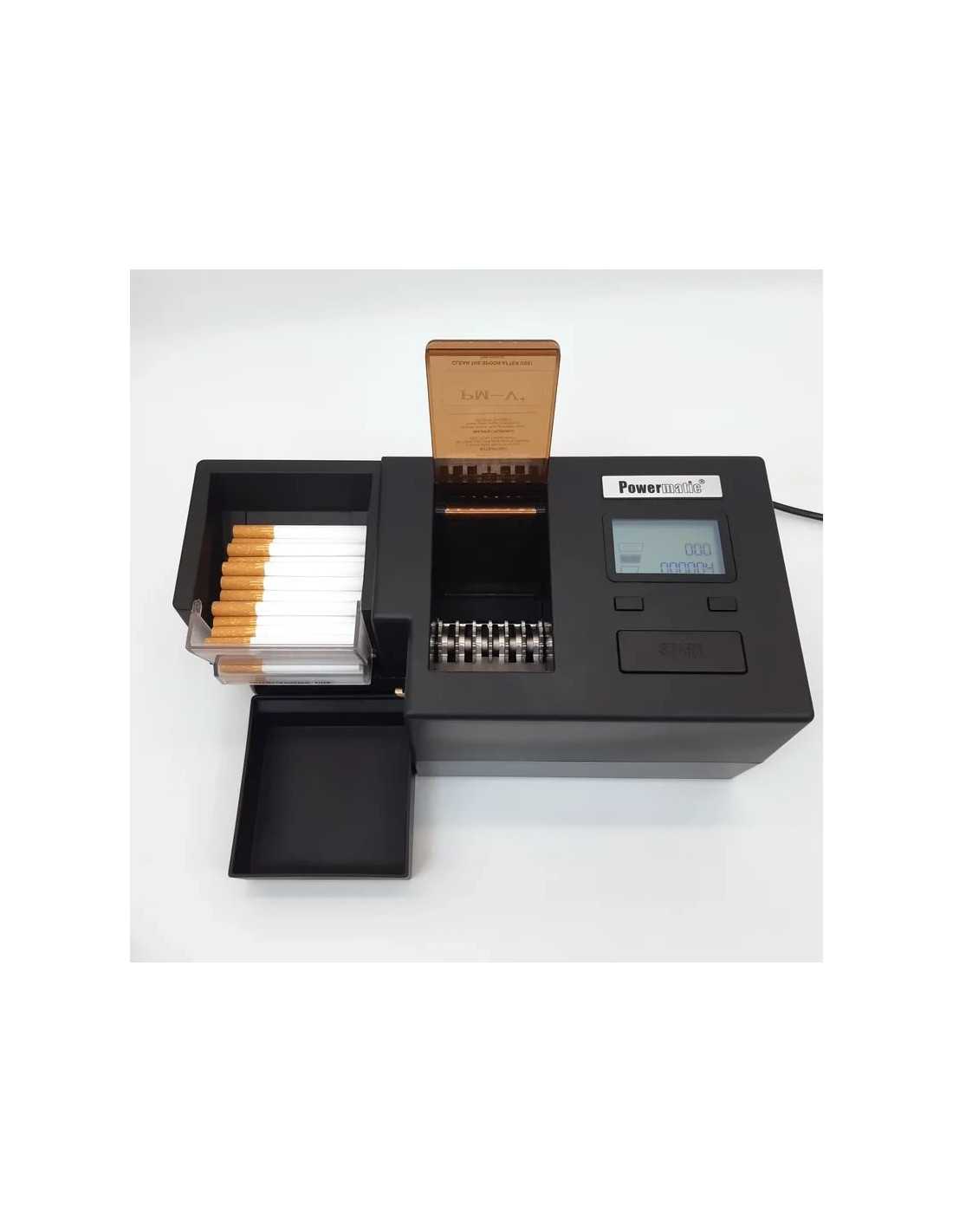- Enkeltstyks-præcision (E-AUTO): For dem, der foretrækker at fremstille cigaretter én ad gangen med fuld opmærksomhed på hver enkelt. Et tryk på START starter den automatiske proces for én cigaret. Denne metode giver en følelse af kontrol, der minder om den traditionelle Powermatic 5-oplevelse.